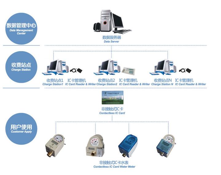 IC卡水表系統(tǒng)以IC卡作為數(shù)據(jù)載體,在微機系統(tǒng)管理軟件下可實現(xiàn)用水收費、數(shù)據(jù)存儲分析、監(jiān)控水表運行狀態(tài)等功能,從而對水資源實現(xiàn)科學(xué)化、系統(tǒng)化、透明化的管理。本系統(tǒng)可通過預(yù)付費、水表自動核減水量、根據(jù)水量自動開關(guān)閥等途徑,解除傳統(tǒng)人工抄表擾民、耗費大量時間和精力等難題,并杜絕惡意欠費。IC卡水表系統(tǒng)可有效提高管理部門的效益,已廣泛在高校、物業(yè)中心等全國各行業(yè)成功運用。